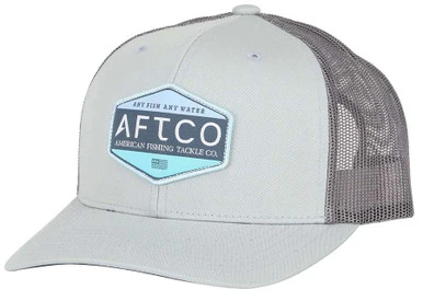 The Aftco Transfer Trucker hat is a 6 panel structured trucker style hat with comfortable polyester mesh backing to keep your head cool and ventilated on the water. It features a woven logo patch on the front.