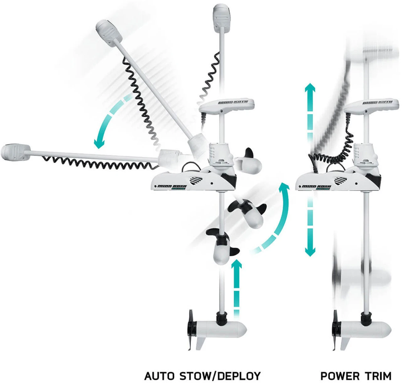 - Power Trim – Once your motor’s in the water, Power Trim lets you easily adjust the motor depth for changing conditions using your remote. Riptide Ulterra handles the busy work so you can focus on fishing.
