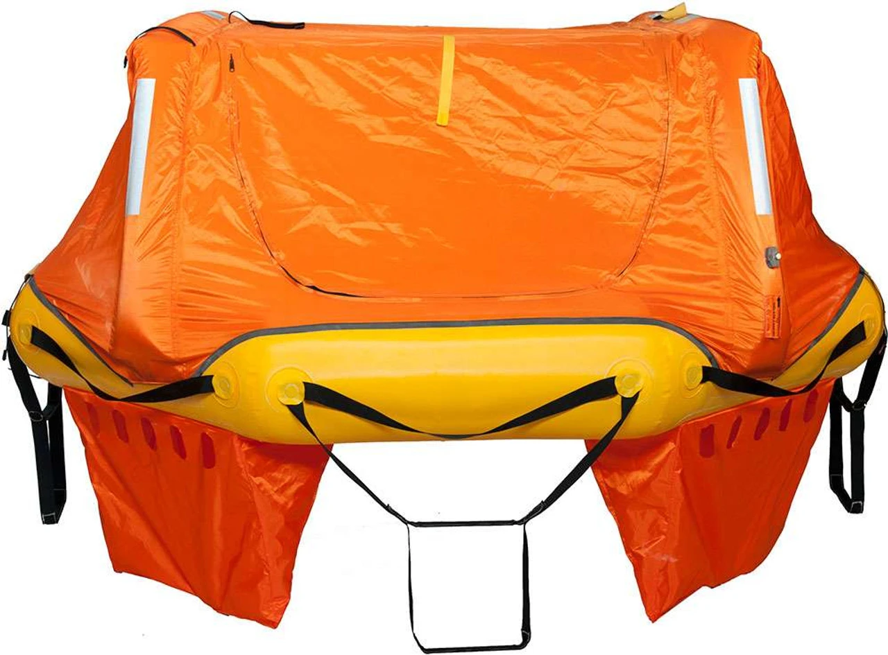 The Switlik Signature Convertible Canopy System is an improvement over rafts with limited points of entry. The convertible canopy system allows for rapid and flexible boarding in an emergency without needing to enter the water. This increases the safety factor for everyone on board, when those who are young, old or injured need to get off the boat quickly. The Switlik CPR makes it as easy as possible with four (4) boarding stations, and four (4) wide, stiffened rung ladders that make it easy for someone to climb over a single tube.