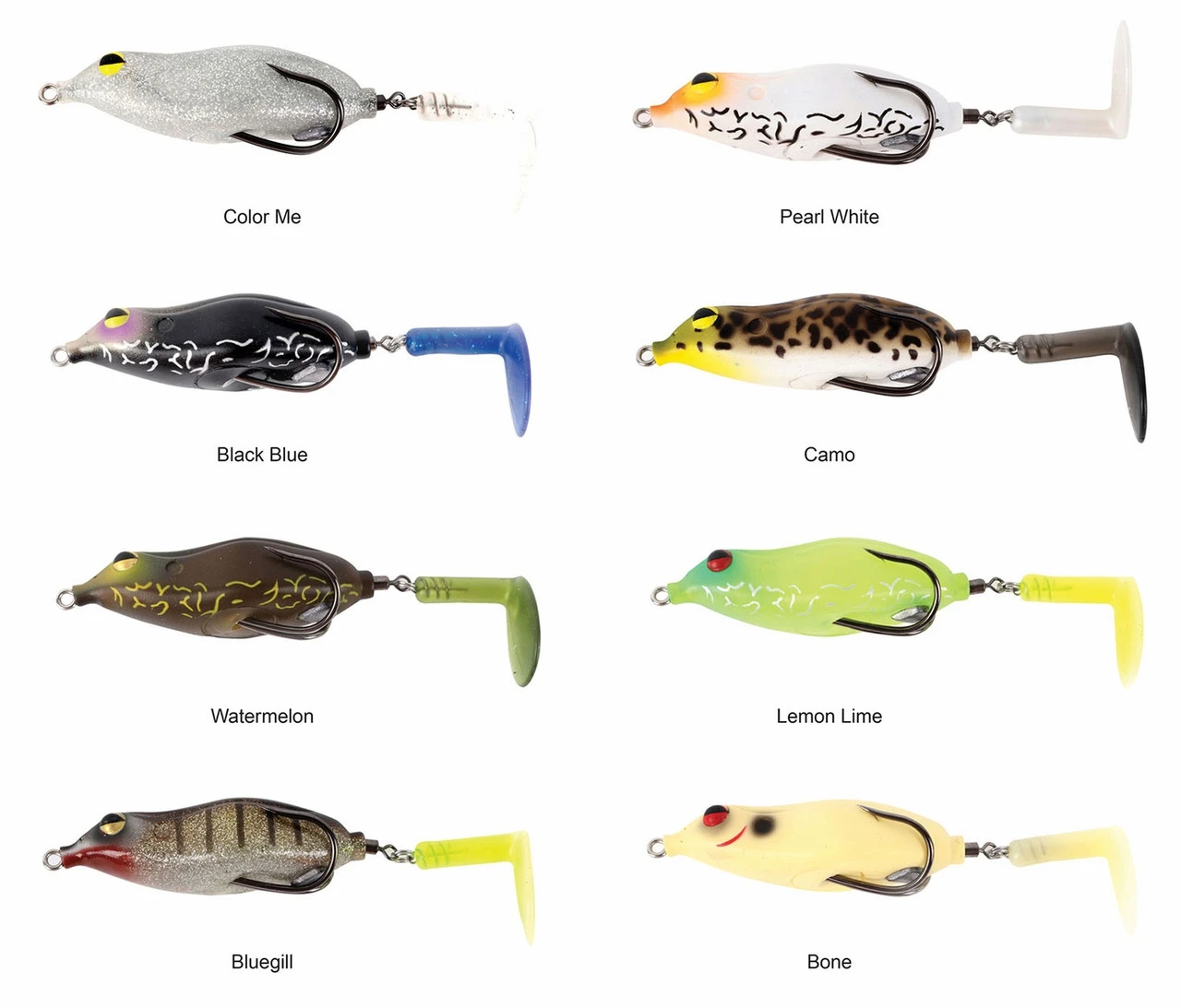 Teckel USA Sprinker Frog features a soft paddle tail at the end of the body with a rolling swivel. When reeling, the tail spins and slaps the water creating a distinct chopper sound and a wide sputter. These lures have a long castability, are straight running and have incredible action.